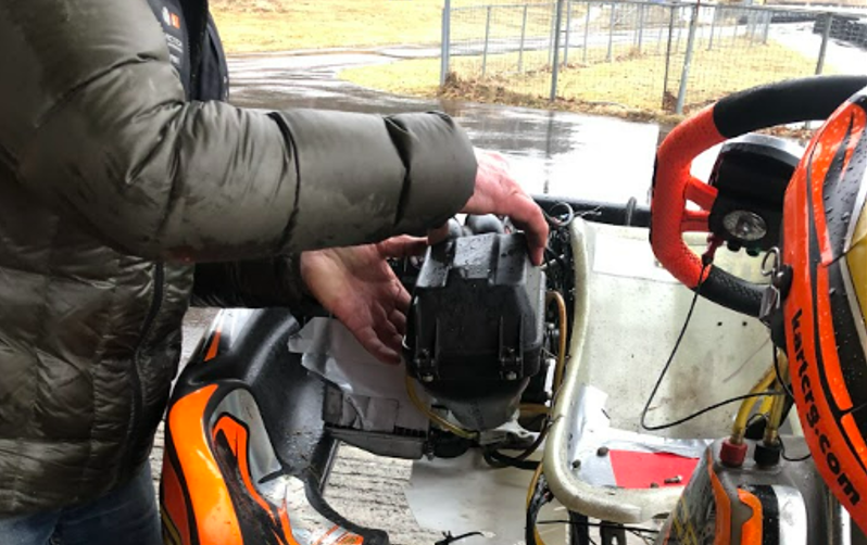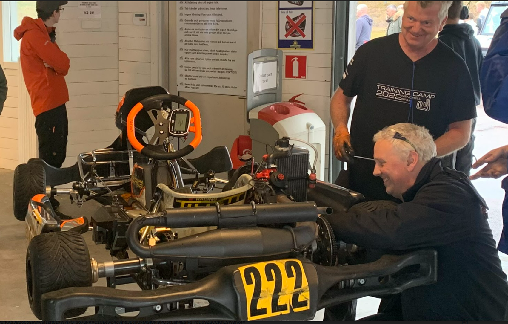 Sen hade vi träningsläger på Enabanan och jag passade på att testa olika anställningar för att optimera en mer aggressiv körning. Ramen fick tyvärr svetsas två gånger under träningsveckan. På fredagen upptäckte vi dessutom flera sprickor i ramen. Vi fick veta att chassit var ”dött” och inte längre har den spänst som krävs. Det inte gick att få tag på en ny CRG-ram från Italien. Skulle vi byta märke nu direkt? Men jag ville hinna prova mig fram och det kändes stressigt att lära känna ett nytt märke bara några veckor innan nästa tävling. Vi försökete”stå ut” med karten säsongen ut med inställningen att acceptera att det inte skulle bli några drömtider. Men efter ytterligare en vecka med nya svetsningar började vi leta efter alternativ. Jag testade en Goldkart i Järfälla och jag kände genast att den svarade bättre än min befintliga kart.