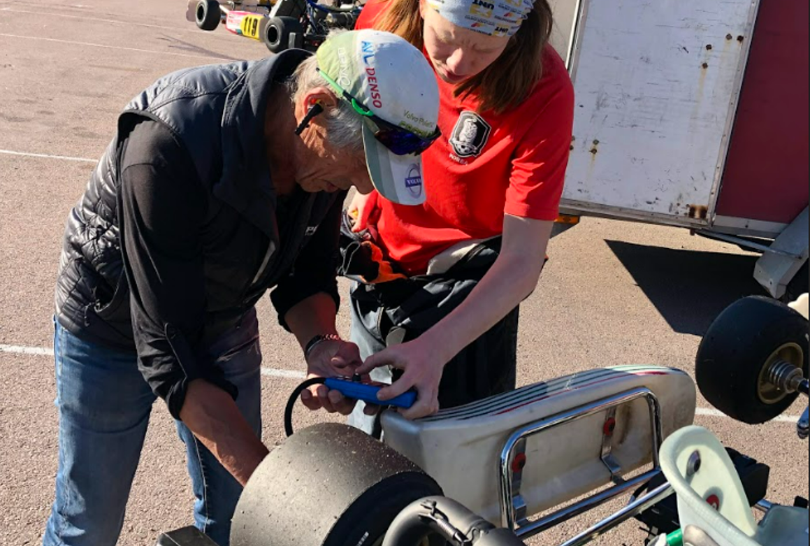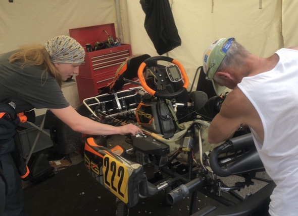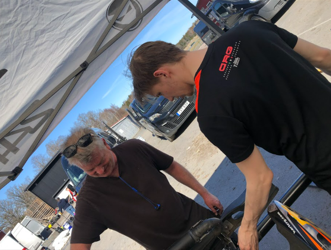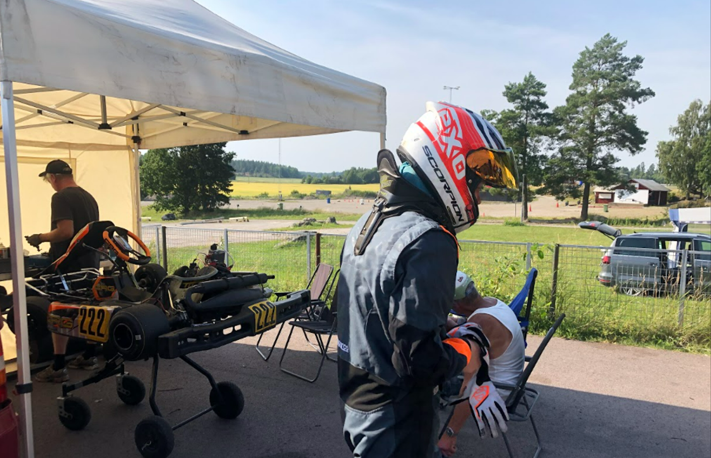 Jag planerade att satsa på RMC-serien i år. Jag är fortfarande rookie i sammanhanget: I våras hade jag genomfört tio tävlingar i storkart totalt i mitt liv så tävlingarna ger mig tillfällen att lära mig av de bästa. Många har 10 års tävlingar i kroppen men det finns några med mindre erfarenhet som jag kan fightas med längre bak också. Men den här tävlingen var verkligen inte en bra början på min tävlingssäsong. Inte nog med att jag kom in sist i finalen. Jag rullade in ett halvt varv efter den som låg framför mig. Så här dåligt brukar det inte gå, och jag kände att någonting var riktigt fel. Efter tävlingen upptäckte vi flera fel, bland annat ett elfel på motorn. Så även om jag kanske tappade fokus i slutet av tävlingen (efter att ha fått in en geting i hjälmen på förfinalen) tror jag att det inte bara hade med mig att göra. Men vi lärde oss mycket eftersom vi stod i samma tält som Sebastian Svensson, en av Sveriges snabbaste förare i min klass.